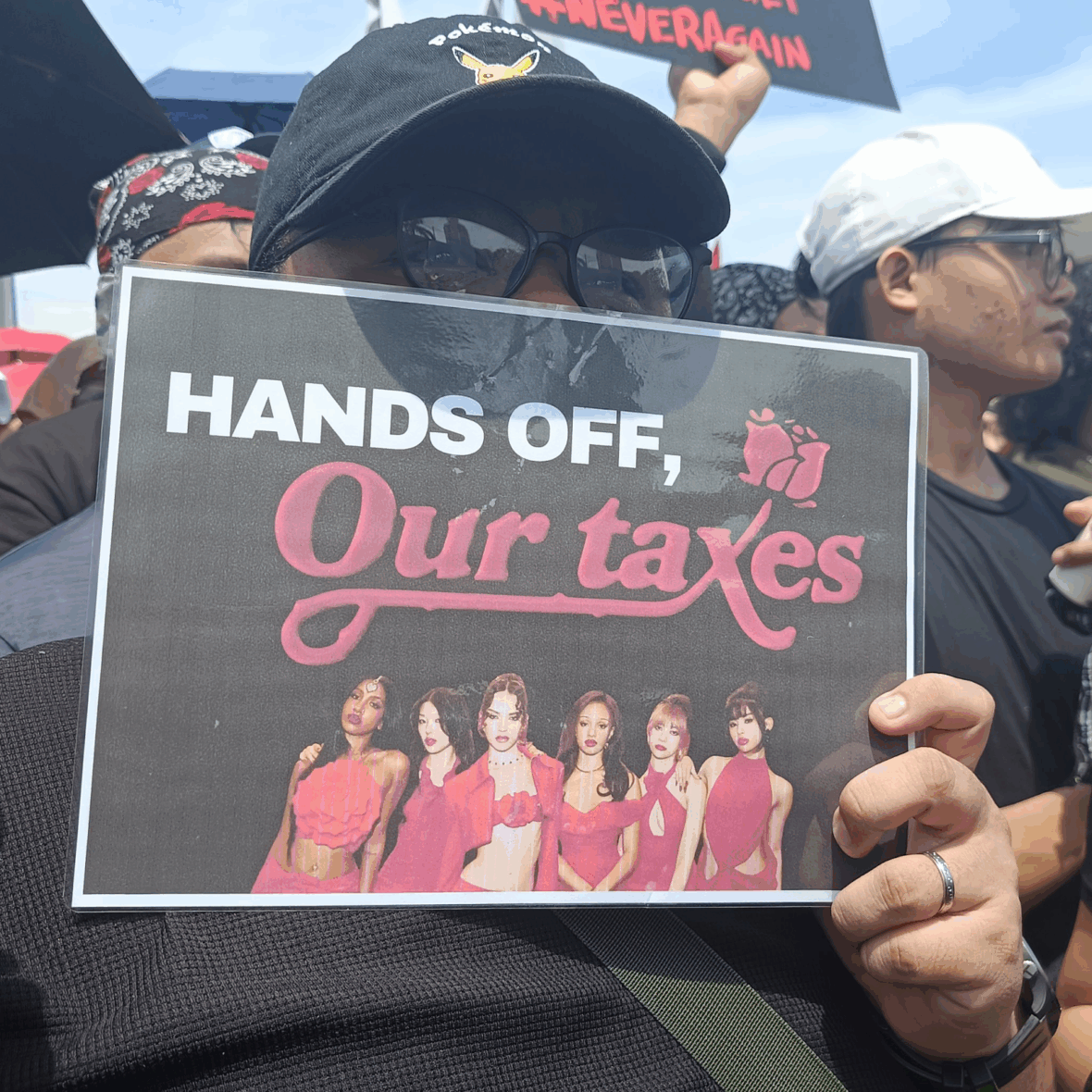 Jovens dos mais variados fandoms levaram cartazes, bandeiras e até mesmo seus lightsticks para protestarem. Nos cartazes e bandeiras, os fãs usaram toda a criatividade com trocadilhos do meio k-popper para demonstrarem sua indignação.
