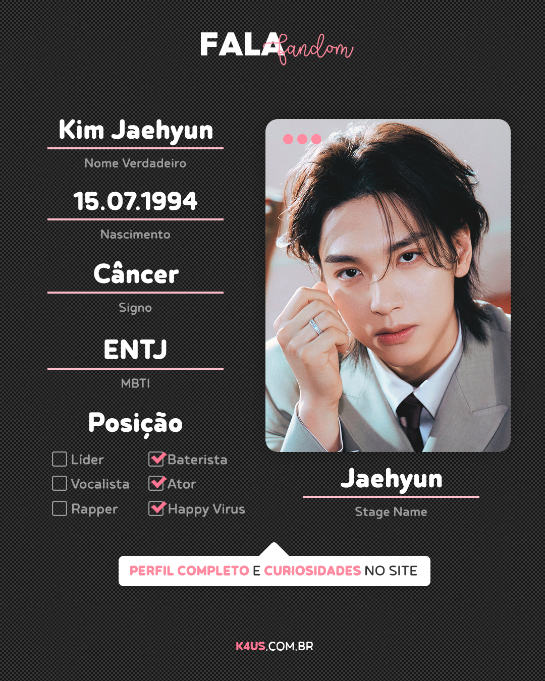 Também sabe dançar bem e tem ótimo ritmo, o que ajuda bastante nas apresentações da banda. - Além da música, tem interesse em atuação e já participou de dramas e programas de TV.