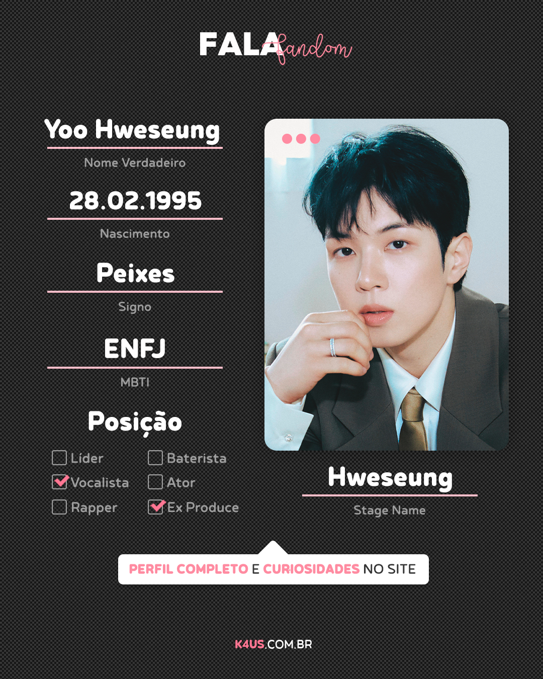 - Tem um vínculo forte com o líder Lee Seung Hyub. Os dois se completam no palco com suas vozes e presença.