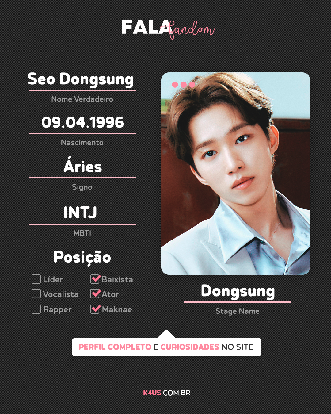 - Dongsung é conhecido por ser tranquilo, gentil e muito observador, mas com senso de humor único.
