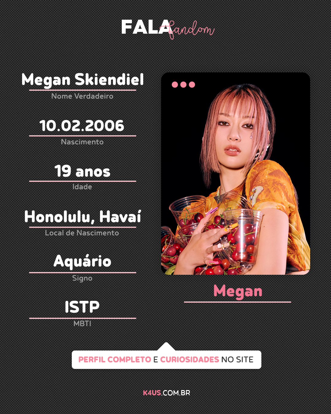 - Megan faz parte da comunidade LGBTQ+ e se assumiu bissexual durante uma transmissão ao vivo no Weverse ao lado de Lara.