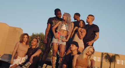 A diferença é que agora, durante o pôr do sol, ela dança em cima do carro com um boy!